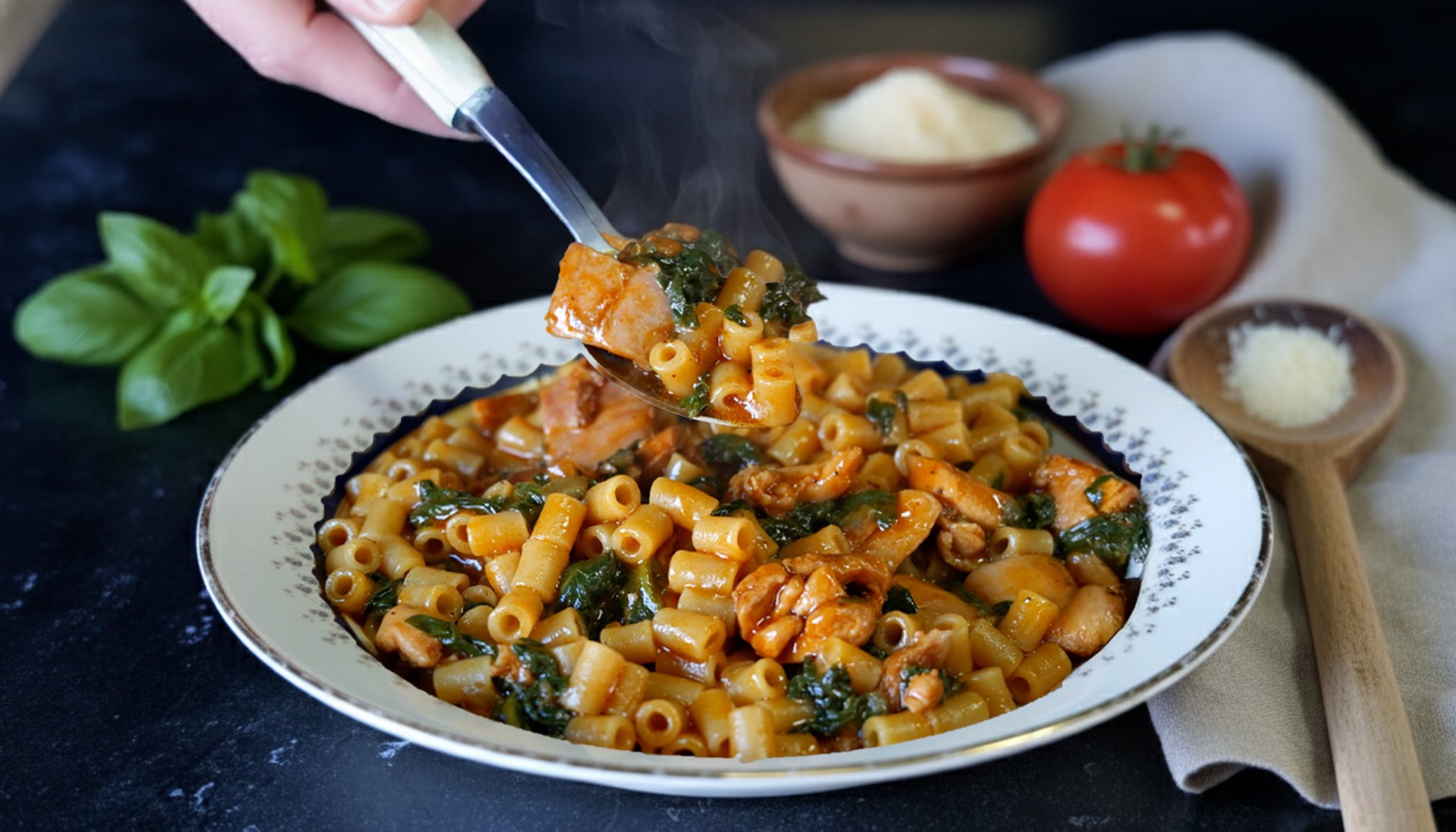 Κοφτό Μακαρονάκι με Κοτόπουλο και σπανάκι!